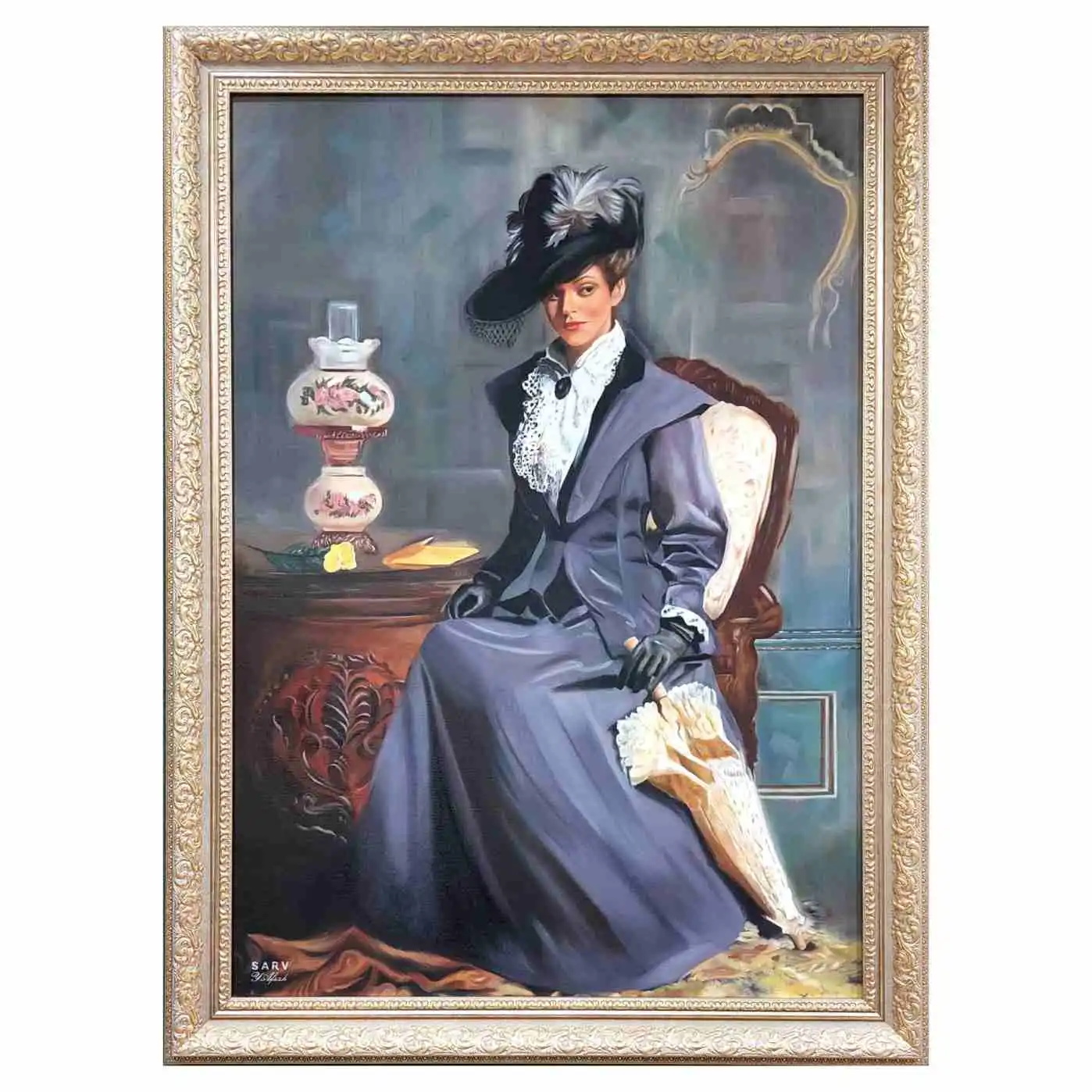نگاه زن نجیب زاده به دوردست احساس عمیق تفکر و آرزو را منتقل می کند . صندلی قدیمی و لامپ نفتی در پس زمینه فضای سنتی و با شکوهی را ایجاد میکند که یادآور روزهای گذشته و تاریخ پر از زیباهای فرهنگی است . رنگهای ملایم و تیره در ترکیب با نور به دقت ایجاد شده حس عمق و آرامش را در اثر ایجاد می کند. این نقاشی نه تنها زیبایی ظاهری را نمایان میکند بلکه داستانی از زندگی و هویت زن را روایت می نماید . نقاشی زمان ایستاده ما را به تامل در مورد قدرت زیبایی و تاریخ می کشاند و یادآور می شود که هر تصویر دنیایی از احساسات و داستانها در خود نهفته دارد. این اثر ما را به گذشته می برد و باعث میشود به حسرت ها آرزوها و زیبایی های زندگی فکر کنیم .